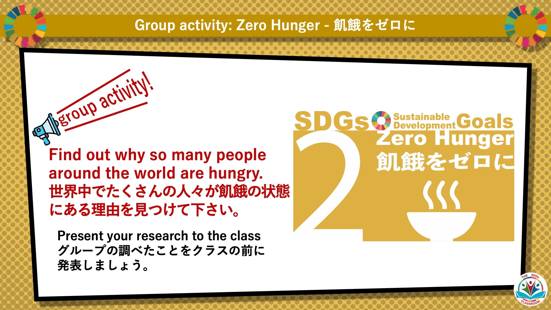 この教材では、目標1「貧困をなくそう」 と 目標2「飢餓をゼロに」 に焦点を当て、生徒の考える力と表現力を育てます。